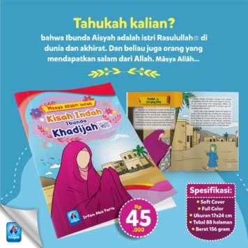 Rp 35.000KISAH INDAH IBUNDA AISYAH βπ» Siapa di antara kita yang tak kenal Ibunda Aisyah Radyiallahu Anha, salah satu Ummahatul Mukminin. Ibundan semua orang yang beriman. βπ» Ya, dialah Asiyah binti Abu Bkar, salah satu istri Rasulullah shallallahu alaihi wa sallam. Dialah wanita yang paling dicintai Rasulullah. βπ» Dialah wanita suci, mensucikan dirinya, dibersihkan dari dosa… selengkapnya